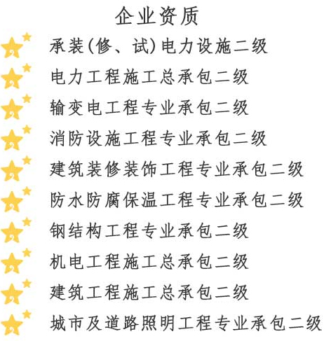 金楓電力集團(tuán)有限公司,成立于2015年5月28日,注冊(cè)資金6060萬(wàn)元,是一家專業(yè)從事電力工程施工的集團(tuán)化公司。公司經(jīng)營(yíng)范圍包括:電氣安裝服務(wù);建設(shè)工程施工;輸電、供電、受電電力設(shè)施的安裝、維修和試驗(yàn);測(cè)繪服務(wù);建筑勞務(wù)分包;建筑工程設(shè)計(jì);發(fā)電機(jī)及發(fā)電機(jī)組制造;建筑工程機(jī)械與設(shè)備租賃;工業(yè)工程設(shè)計(jì)服務(wù);技術(shù)服務(wù)、技術(shù)開(kāi)發(fā)、技術(shù)咨詢、技術(shù)交流、技術(shù)轉(zhuǎn)讓、技術(shù)推廣等。公司持有國(guó)家能源局頒發(fā)的承裝(修、試)電力設(shè)施許可證,承裝類二級(jí)、承修類二級(jí)、承試類二級(jí)資質(zhì);電力工程施工總承包二級(jí)資質(zhì);輸變電工程專業(yè)承包二級(jí)資質(zhì);建筑裝修裝飾工程專業(yè)承包二級(jí)資質(zhì);消防設(shè)施工程專業(yè)承包二級(jí)資質(zhì);防水防腐保溫工程專業(yè)承包二級(jí)資質(zhì);施工勞務(wù)資質(zhì);機(jī)電工程施工總承包二級(jí);建筑工程施工總承包二級(jí);城市及道路照明工程專業(yè)承包二級(jí);鋼結(jié)構(gòu)工程專業(yè)承包二級(jí)資質(zhì);公司已通過(guò)質(zhì)量管理體系認(rèn)證、環(huán)境管理體系認(rèn)證及職業(yè)健康安全管理體系認(rèn)證。并獲得省級(jí)信用評(píng)價(jià)AAA證書(shū);連續(xù)多年納稅信用評(píng)價(jià)A級(jí)。